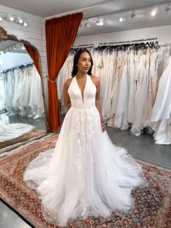 This gown is part of our Brand New Gown Collection. The original tags are attached on designer gowns. Unlike sample sale gowns, these dresses have never been worn and are completely untouched. For any inquiries about our gowns or for additional images showcasing their pristine state, please don't hesitate to contact us through phone or email. We are dedicated to providing you with all the information you need to confidently make your purchase. All gowns are listed by street size, not bridal size. Reach out to us at info@seattlebridalrack.com or call (206) 466-2348. Your dream gown awaits!