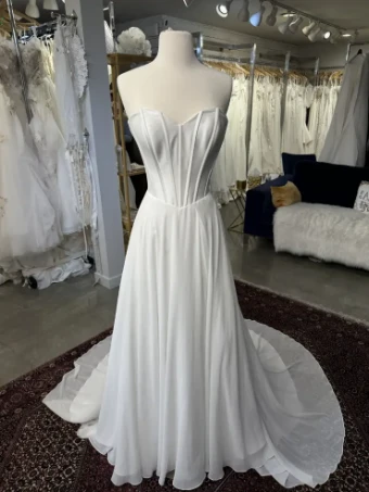 This gown is part of our Brand New Gown Collection. The original tags are attached on designer gowns. Unlike sample sale gowns, these dresses have never been worn and are completely untouched. For any inquiries about our gowns or for additional images showcasing their pristine state, please don't hesitate to contact us through phone or email. We are dedicated to providing you with all the information you need to confidently make your purchase. All gowns are listed by street size, not bridal size. Reach out to us at info@seattlebridalrack.com or call (206) 466-2348. Your dream gown awaits!